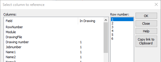 RowNumber – This numeric column can be used to generate several data rows to one drawing file. If the rownumber value is > 0, will be value replaced from the template drawing which is: $ + column name + [rownumber ] + $, for example: $ID[1]$, $ID[2]$, etc.