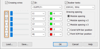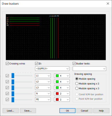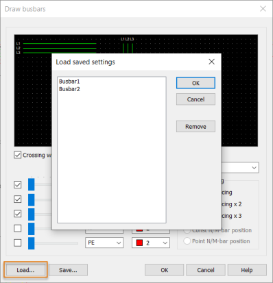 If you have already saved busbar settings, you can load them to the dialog with Load.
