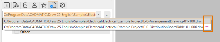 Click the button to select the drawing you want to select symbols from. The selected drawings stay available in the drop-down menu for later use. You can remove them from the list by clicking the (Remove) button next to the drawing name.