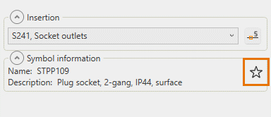 You can define symbols as your favorites by right-clicking the desired symbol and selecting Add to favorites. The symbols can be selected from all the symbols: those in the current drawing or project as well as Electrical symbols.