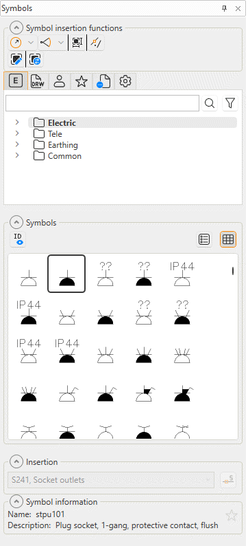 Electrical symbols – This tab shows you all the Electrical symbols available.