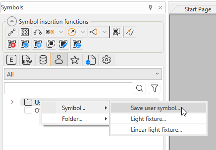 After creating the first folder, you can start the Save user symbol function via the tab: