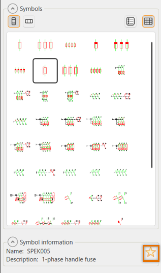 When you select a symbol, its name and description are shown in the Symbol information section. You can then add the symbol to your favorites by clicking the star. If necessary, you can remove the symbol from your favorites by clicking the star again.