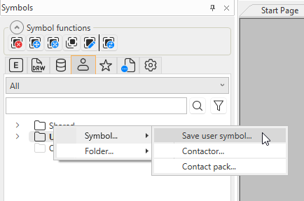 After creating the first folder, you can start the Save user symbol function via the tab: