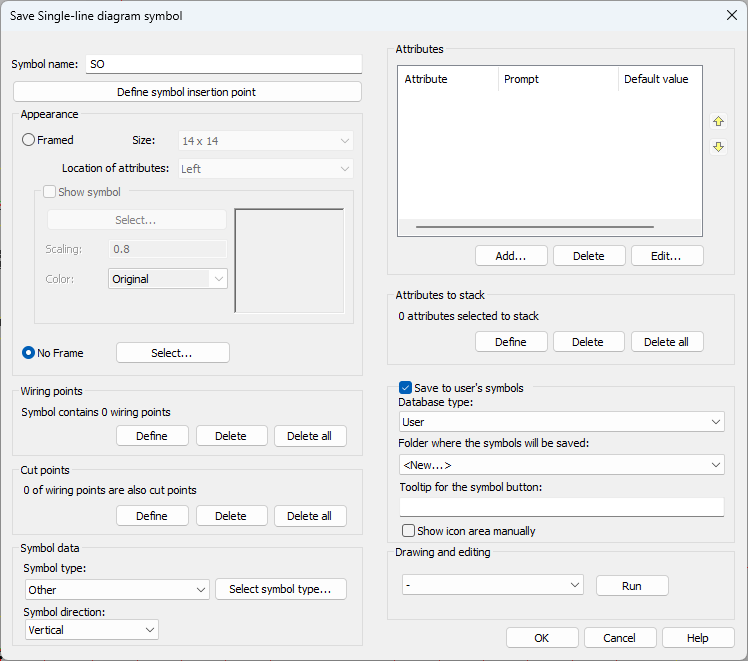 2. Indicate symbol's insertion point. The Save Single-line diagram symbol dialog opens.