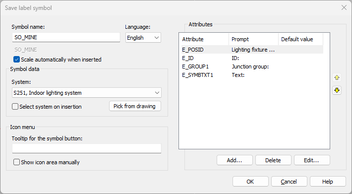 When creating your own label symbol, you can take advantage of the symbols delivered with the application. For example, you can easily import all the required attributes into your own drawing frame by exploding SPOH3V.