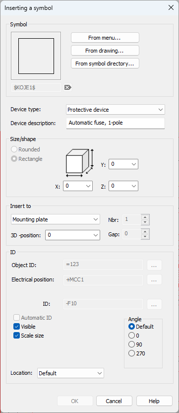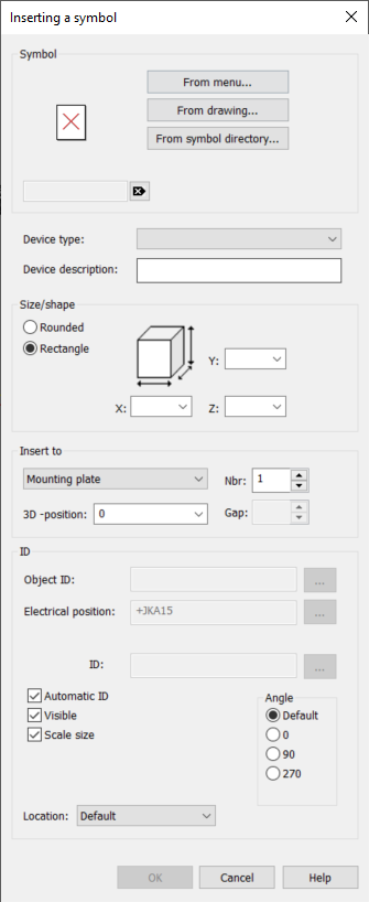 In the project tree, right-click the location, and select Insert device. The Inserting a symbol dialog opens.