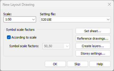 If you selected Arrangement or Arrangement (not in scale), the New Layout Drawing dialog opens.