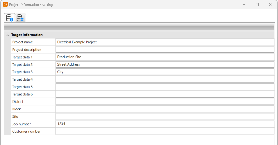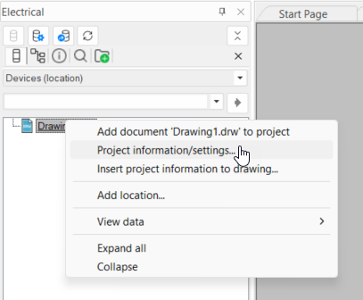 In addition to the ribbon, you can open project information/settings via the Electrical window