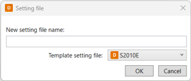 In the Setting files management dialog, you can select the setting file to be used, create new setting files and edit existing files.