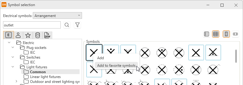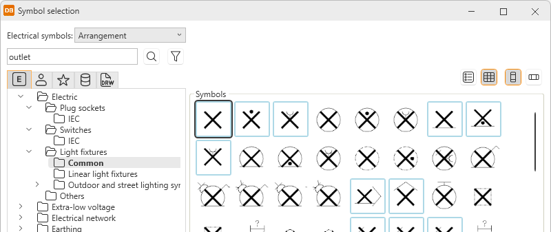 Electrical symbols – This tab shows you all the Electrical symbols available. |