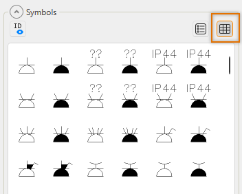Symbols are shown according to your selection in the Symbols section. If the active drawing has no drawing type defined or there are no symbols, multi-line diagram symbols will be shown.