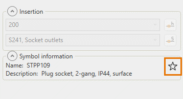Favorite symbols – This tab shows you the symbols you have defined as your favorites, either in the Symbols window or the Symbol selection dialog (see Symbol selection). You can define symbols as your favorites by right-clicking the desired symbol and selecting Add to favorites. The symbols can be selected from all the symbols: those in the current drawing or project as well as Electrical symbols. If necessary, you can remove symbols from favorites by right-clicking them and selecting Remove from favorites. |