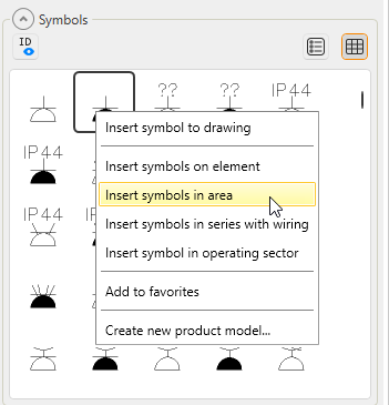 You can insert a symbol into the drawing by double-clicking it and indicating the insertion point. Alternatively, you can right-click the symbol and select Insert symbol to drawing.
