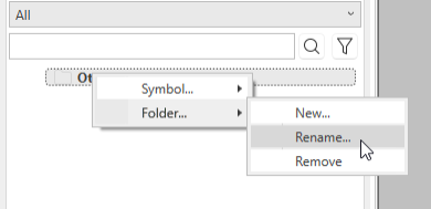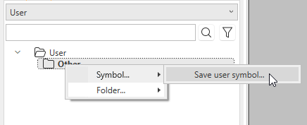 After creating the first folder, you can start the Save user symbol function via the tab by right-clicking and selecting Symbol > Save user symbol: