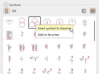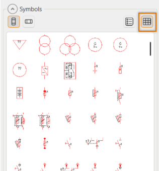 Symbols are shown according to your selection in the Symbols section in the middle of the window. If the active drawing has no drawing type defined or there are no symbols, multi-line diagram symbols will be shown.