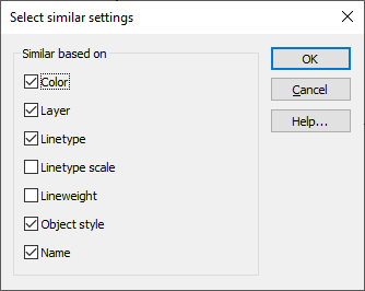 With this function, you can easily select all objects with the same object type (line, circle, etc.) and similar properties.