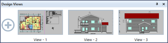 With this function, you can manage saved views of the drawing. You can save views, switch between them and delete them. For each view, set the view limits, direction, rotation angle, coordinte angle, and shading mode. You can open the list of design views also by pressing F3 or by clicking the camera icon in the bottom right of the screen.