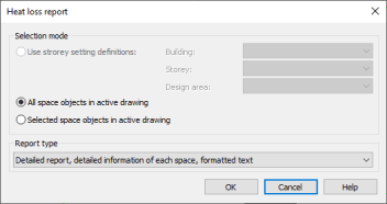 In the Heat loss report dialog, select the space objects whose heat loss report you want to create.