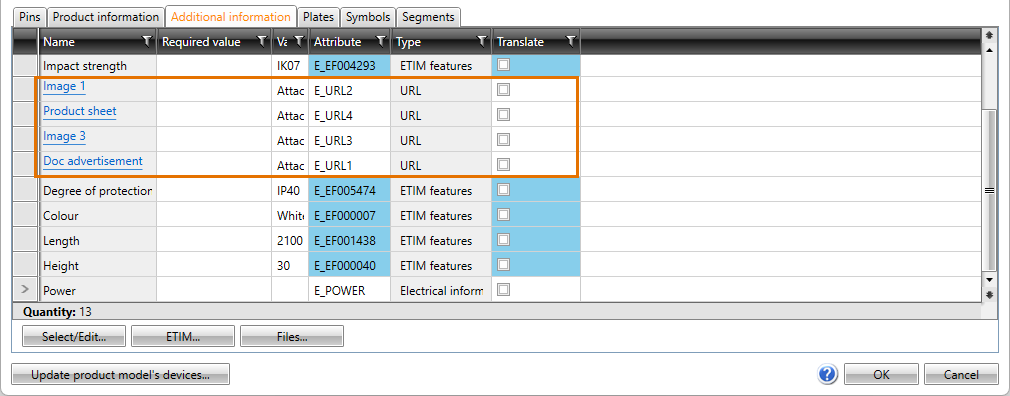 In Electrical, ETIM information is additional information for devices, cables, product models, etc. Selection can be made from the ETIM database, which is provided with the application.