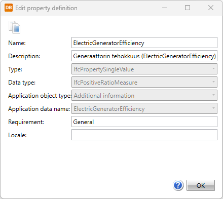 IFC properties menu > IFC property definitions