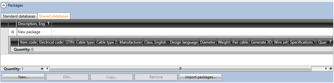 New – Add a new package. You can then add items into the packages by dragging them from the database grids.
