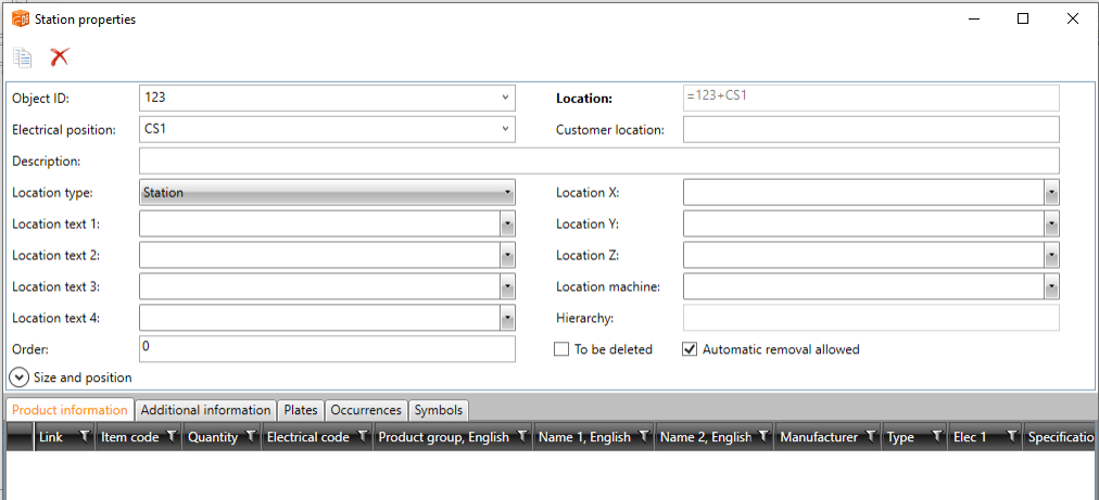 The property dialog opens. The dialog name depends on the location type. For example, if location type is Station, the dialog name is Station properties:
