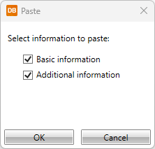 The Paste dialog opens. The list of the data to be pasted depends on the additional information the source device has.