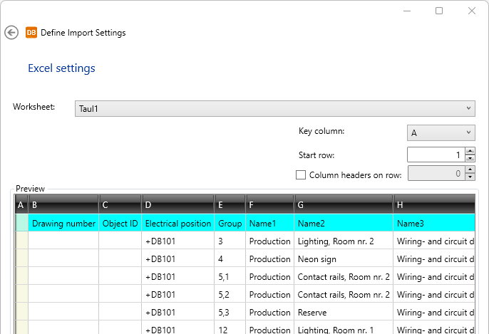 If the column names are identical in the Excel file and the target database, the columns are automatically linked.