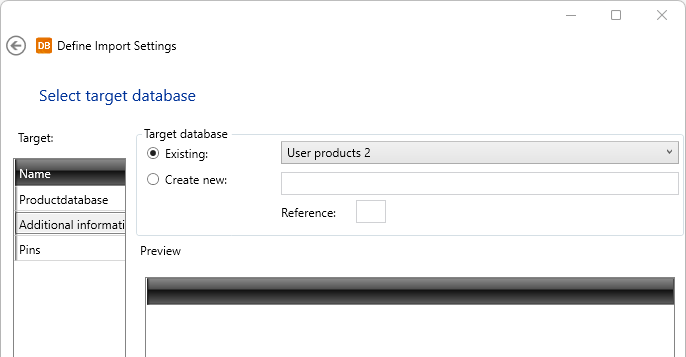 Import definitions specify where the information is imported from and how. You can define the location of the source file and the target database, for example, and add the necessary links to have the information in the correct columns. The preview and automatic operations help in creating the definition.