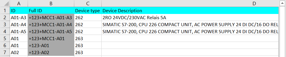In Excel, you can edit the columns with white background in the DB tool. Grey background color indicates that information is "read only" and cannot be edited in Excel. For example, the Full ID column values cannot be edited in Excel: