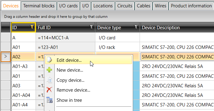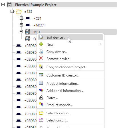 You can also edit information via the project tree: Right-click the desired location or device and select the desired editing function.