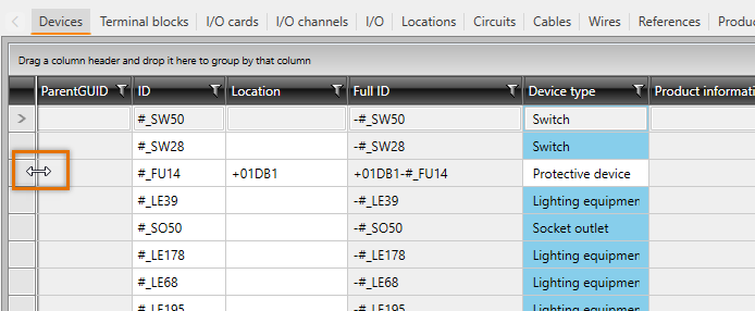 You can freeze columns i.e. keep columns visible while scrolling by dragging the separator from the left border of the grid to the desired location. Columns on the left side of the separator freeze.