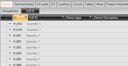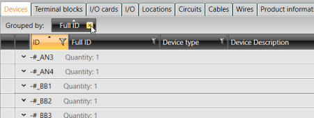 On the different tabs and their auxiliary grids, you can group information based on the desired column header by dragging it to the grouping row: