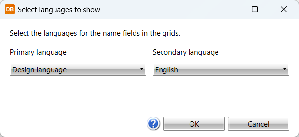 You can select the primary and secondary language for product information Name 1 and Name 2 fields. By default, design language will be used as the primary language and application language as the secondary language.