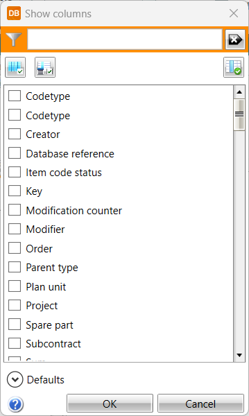 Reset grid settings – Reset all the grid column settings done with, for example, the Show columns function.