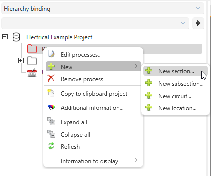 For hierarchy bindings, you can then add new sections, subsections, circuits, and locations: