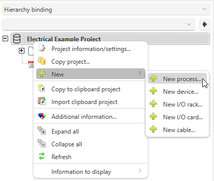 Hierarchy binding is an abstract concept in the same way as a circuit. Hierarchy binding can describe the connection of a circuit or location and hence a certain device with the process, regardless of the physical location of the device.