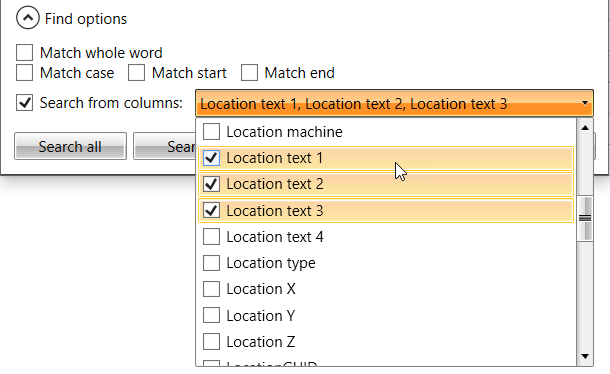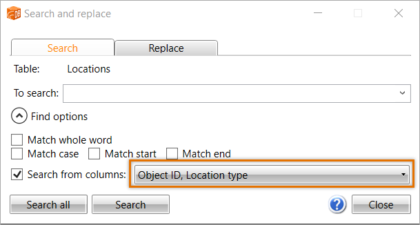 For example, if you only want to search from specific columns, select Searching at columns and then select the desired columns: