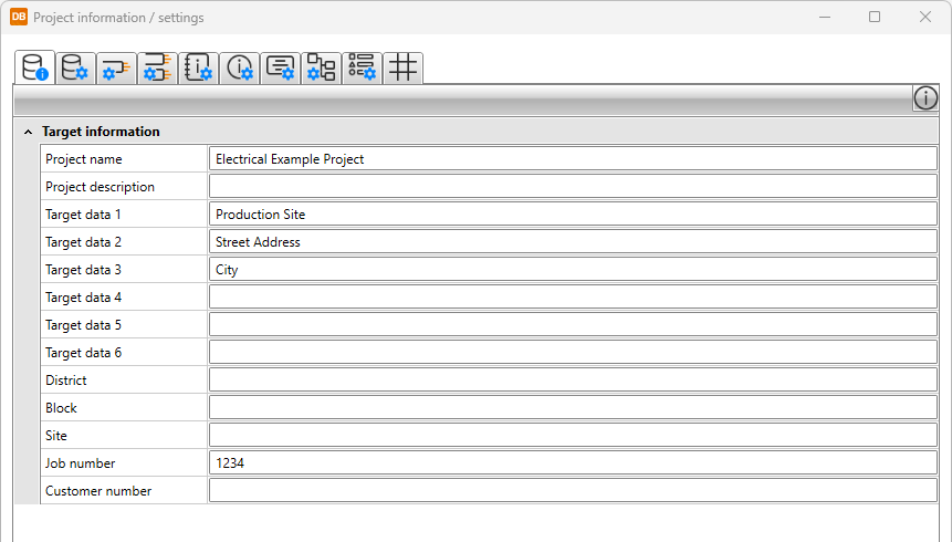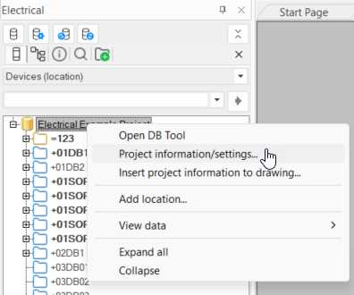 In addition to the ribbon, you can open project information/settings via the Electrical window