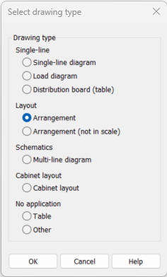 Arrangement (not in scale) – For creating arrangement documents without any measurements, such as cable length