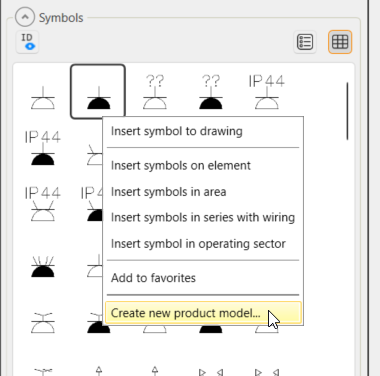 In the Symbols section, you can create product models based on the symbols by right-clicking the selected symbol and selecting Create new product model: