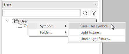 After creating the first folder, you can start the Save user symbol function via the tab by right-clicking and selecting Symbol > Save user symbol:
