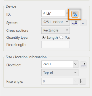 button (Toggle ID visibility on/off), you can define whether to show the ID in the drawing or not. When the ID has been set visible, the button is highlighted.