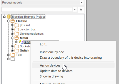 In the Product models project tree, right-click the product models you want to assign to devices and select Assign devices.