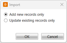 Select whether to add new data fields or update the existing ones, and click OK.