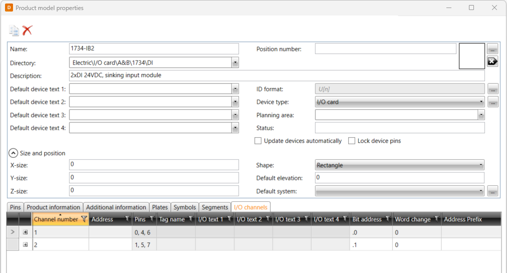 Select a product model created in the import, and click Edit. The Product model properties dialog opens.