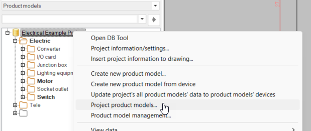 With this function, you can open the Project's product models dialog and then add, copy, edit, and delete the product models. In addition, you can insert the desired product models into the drawing.