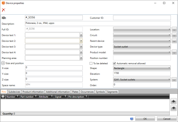 If the drawing has not been added to the project, you can only edit the device ID and pin numbers.