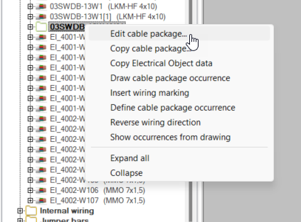 You can also draw a cable package from the project tree by right-clicking the desired package and selecting Draw cable package occurrence.